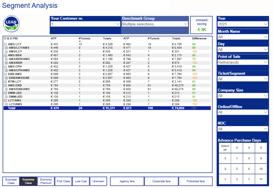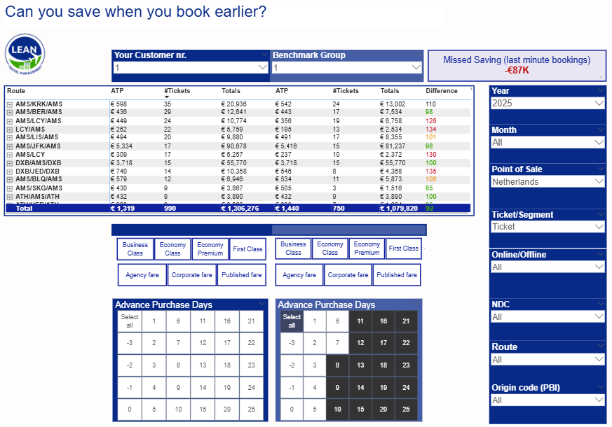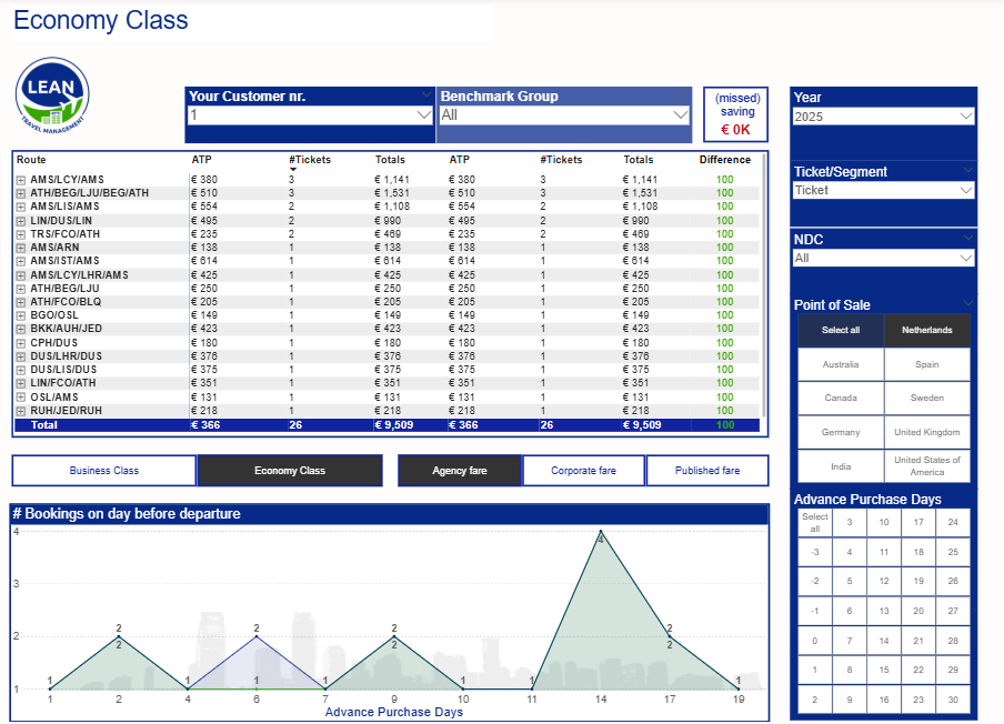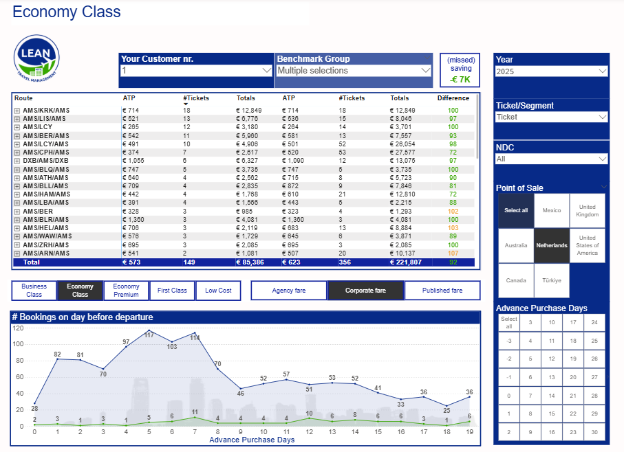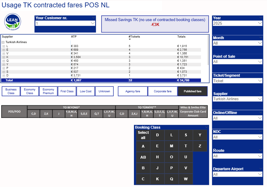 We track each airline’s contracted booking classes and instantly check via our dashboard if the right fares are booked—so you can step in and save when needed